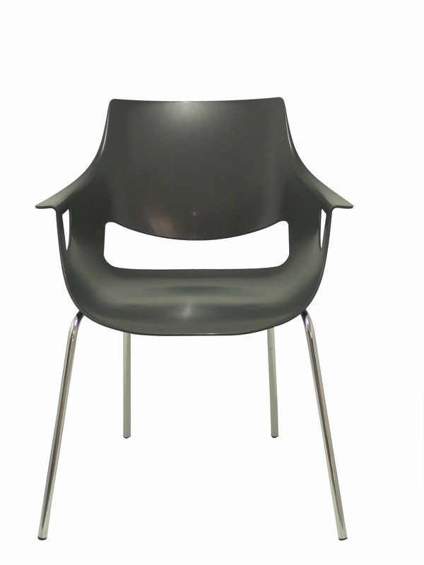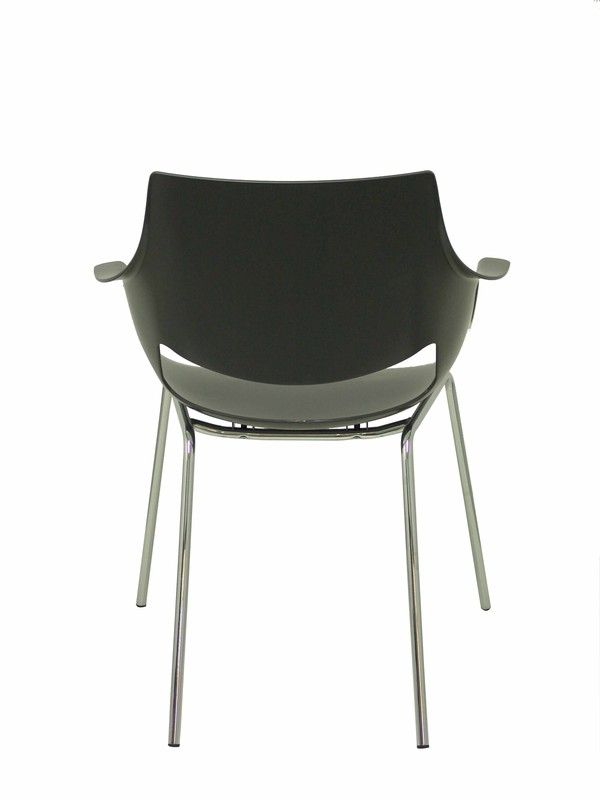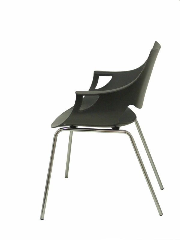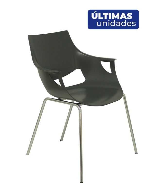 Modelo Torrenueva - Pack de 3 sillas confidentes ergonómica monocarcasa con reposabrazos y estructura metálica tubular. Asiento y respaldo de PVC color gris antracita