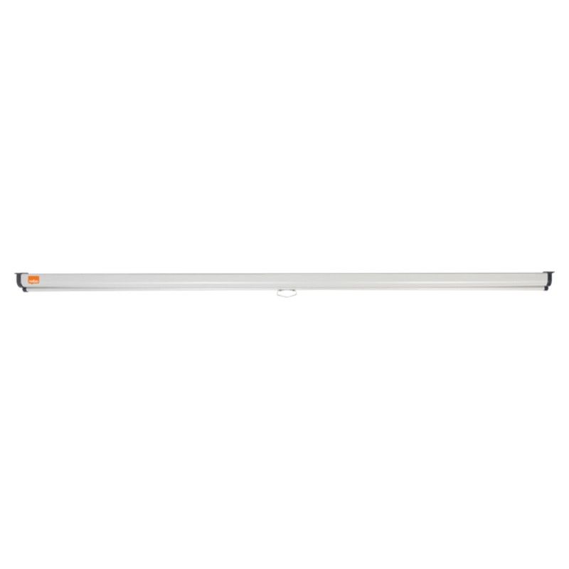 A brilhante superfície mate Branco desta tela fornece uma imagem nítida e detalhada que pode ser facilmente visualizada por todos na audiência. A tela pode ser facilmente retraída em seu alojamento para proteger contra danos ou para armazenar quando não estiver em uso. Com os suportes de extensão opcionais, a tela pode ser montada sobre uma prancha quadro branco ou inclinada para o público. 2400x1600mm.
