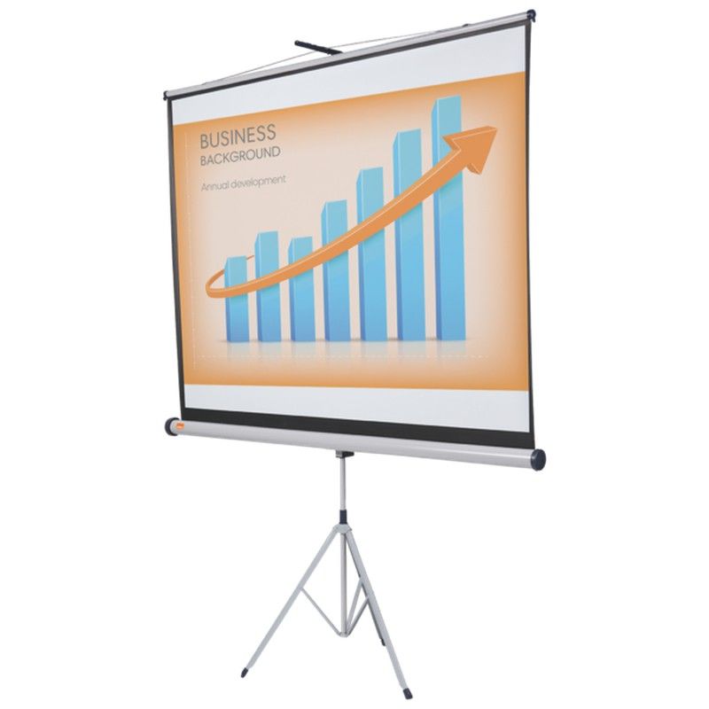 Telas de projetor com tripé flexível. A brilhante superfície mate Branco com borda Preto fornece uma imagem nítida e detalhada que pode ser facilmente visualizada por todos na audiência. A tela pode ser facilmente retraída em seu alojamento para proteger contra danos. 2000x1310 mm.